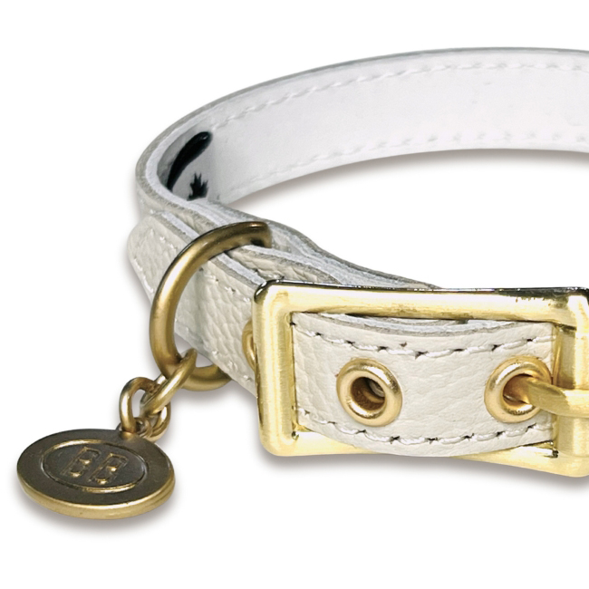 究極のハーネスのバディーベルトと同じ本革を使用したラグジュアリーな首輪です。